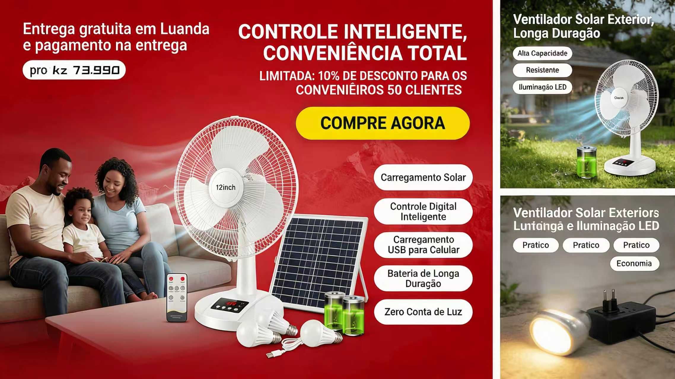 Entrega: Gratuita em Luanda (chega diretamente à sua casa);