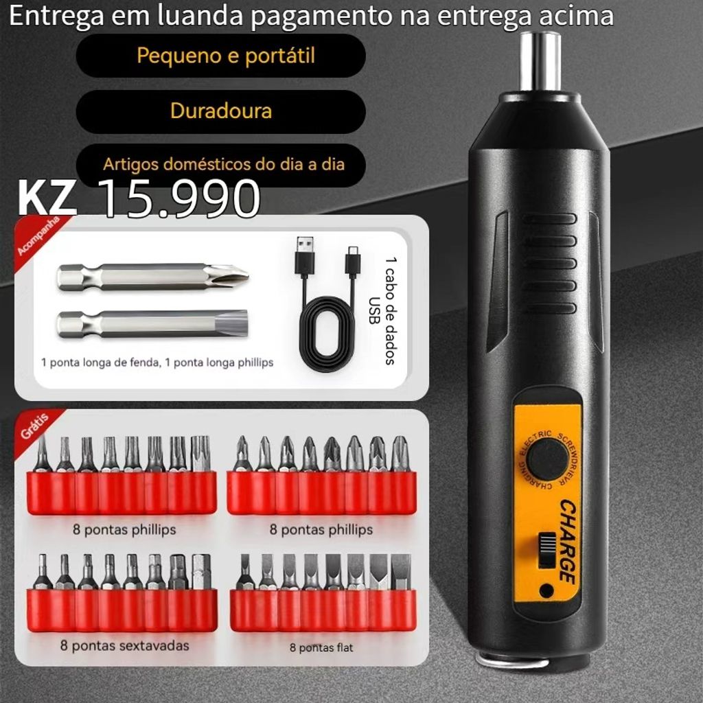 Chave de fenda elétrica recarregável para uso doméstico, furadeira elétrica mini, martelo-torque compacto, kit de ferramentas a bateria de lítio