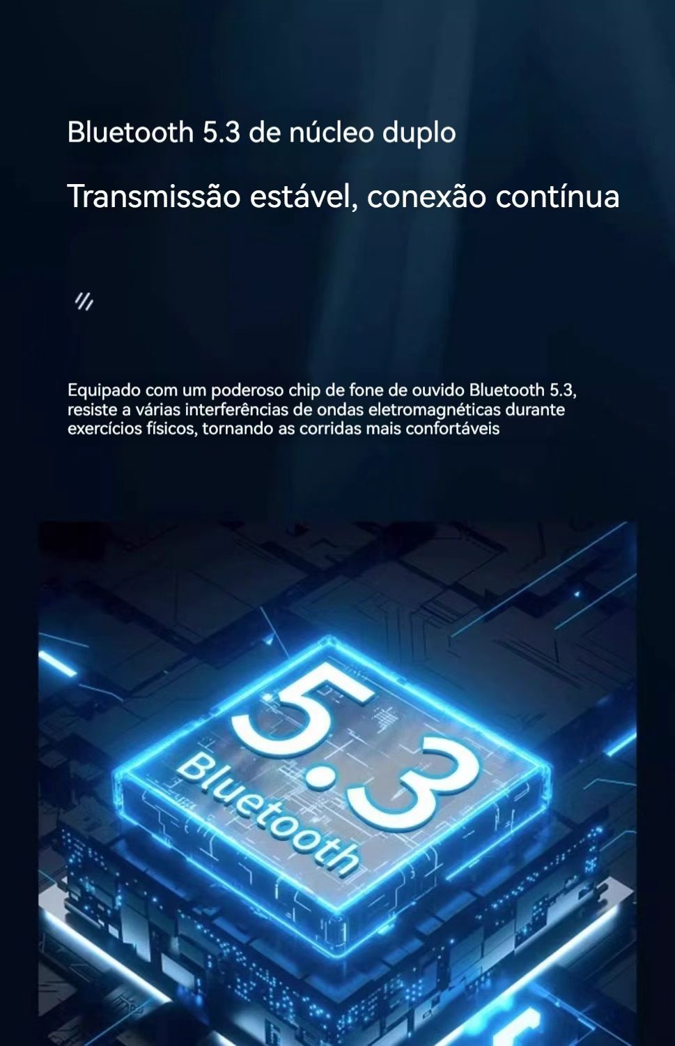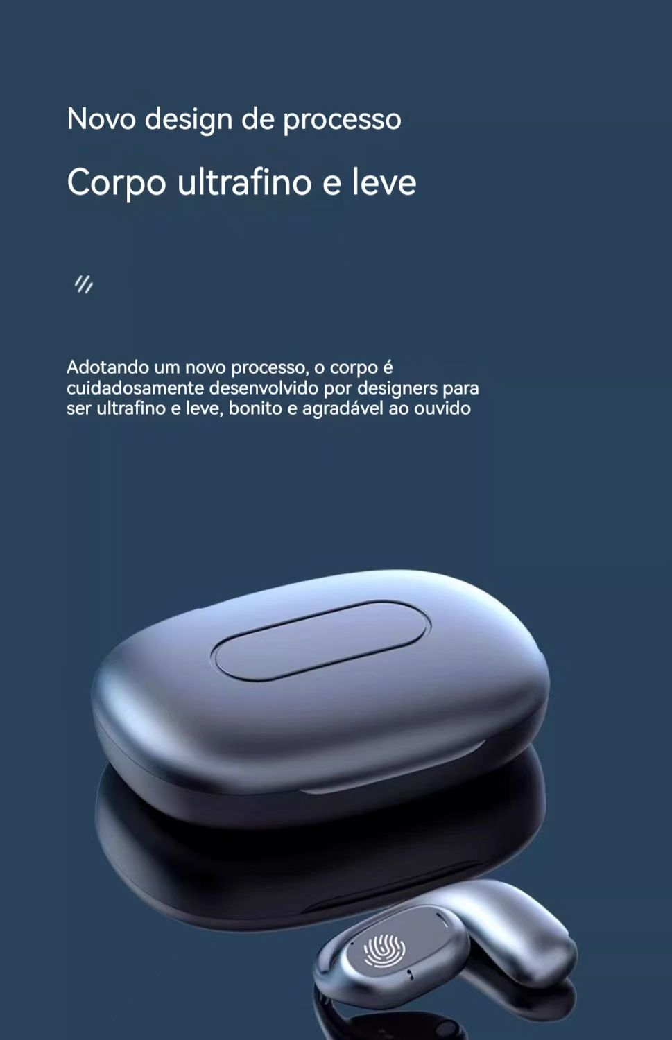 Diferente dos fones comum, ele transmite som pela sua mandíbula — use por horas sem dor no ouvido, perfeito para quem trabalha ou treina com frequência!