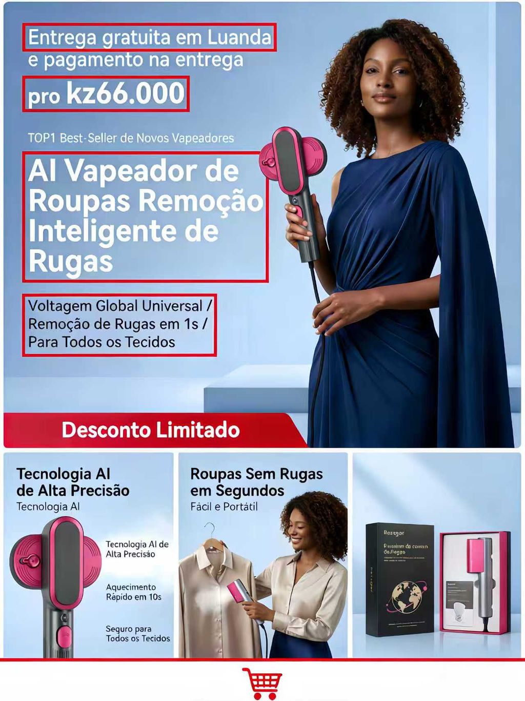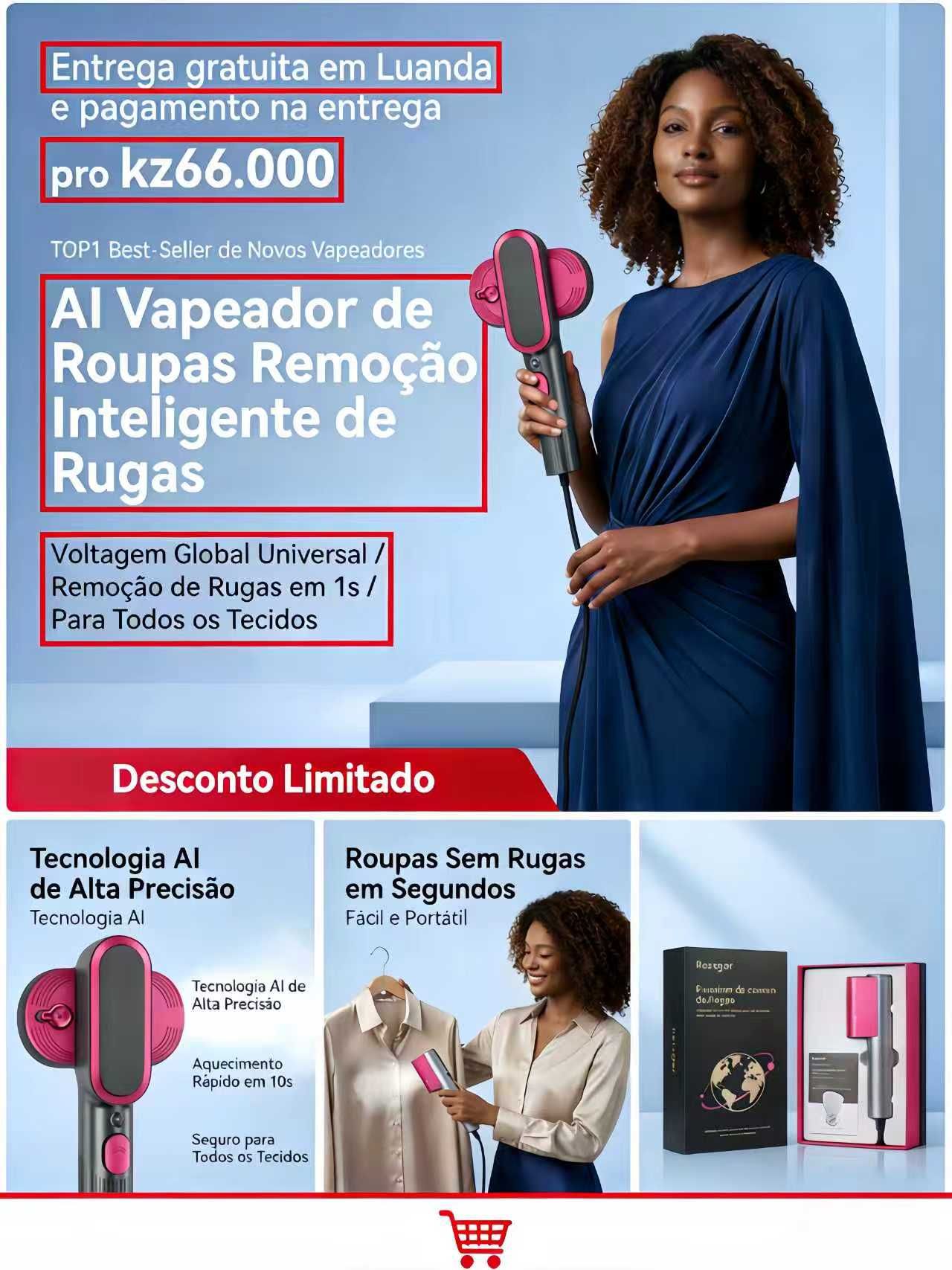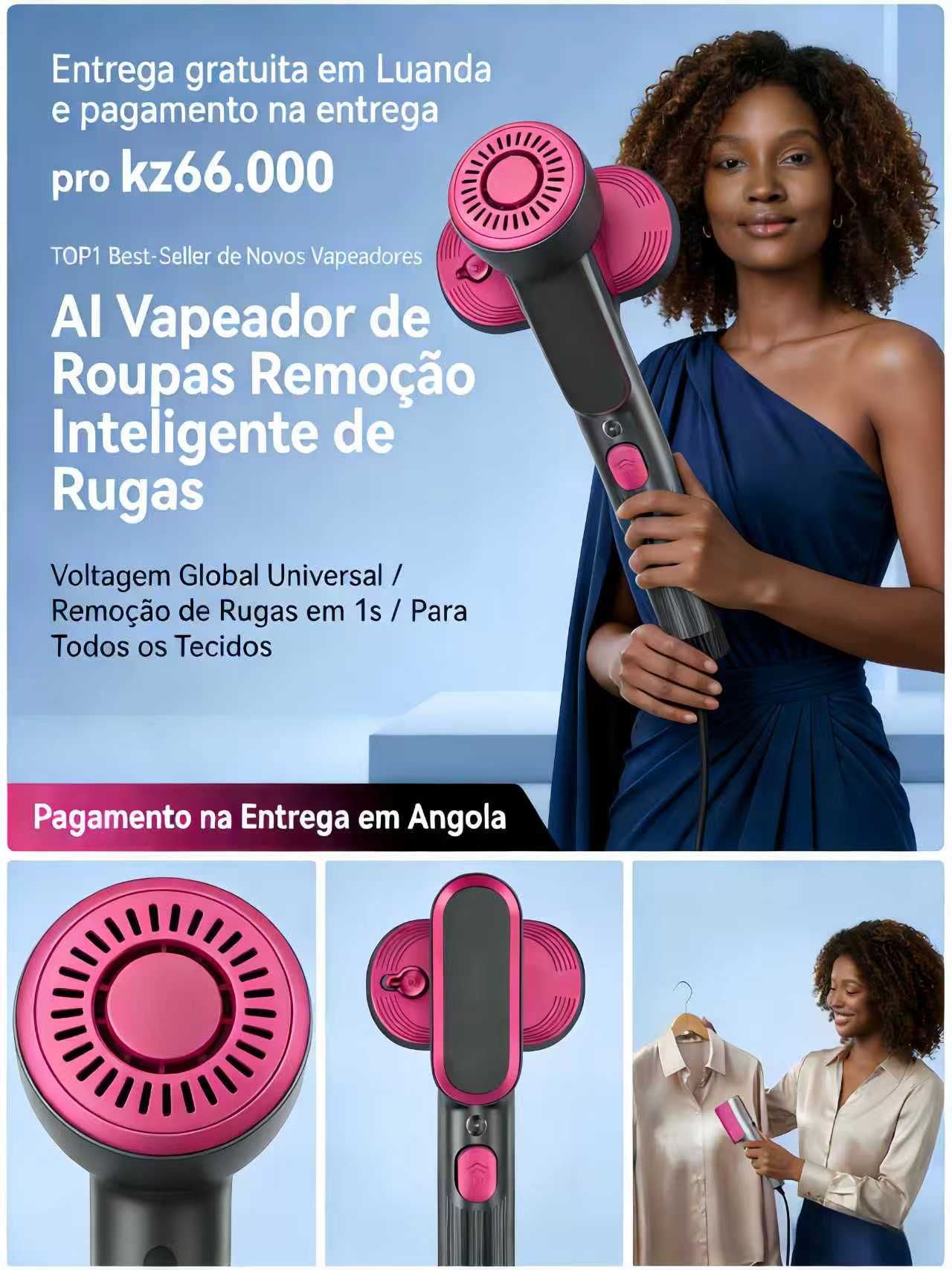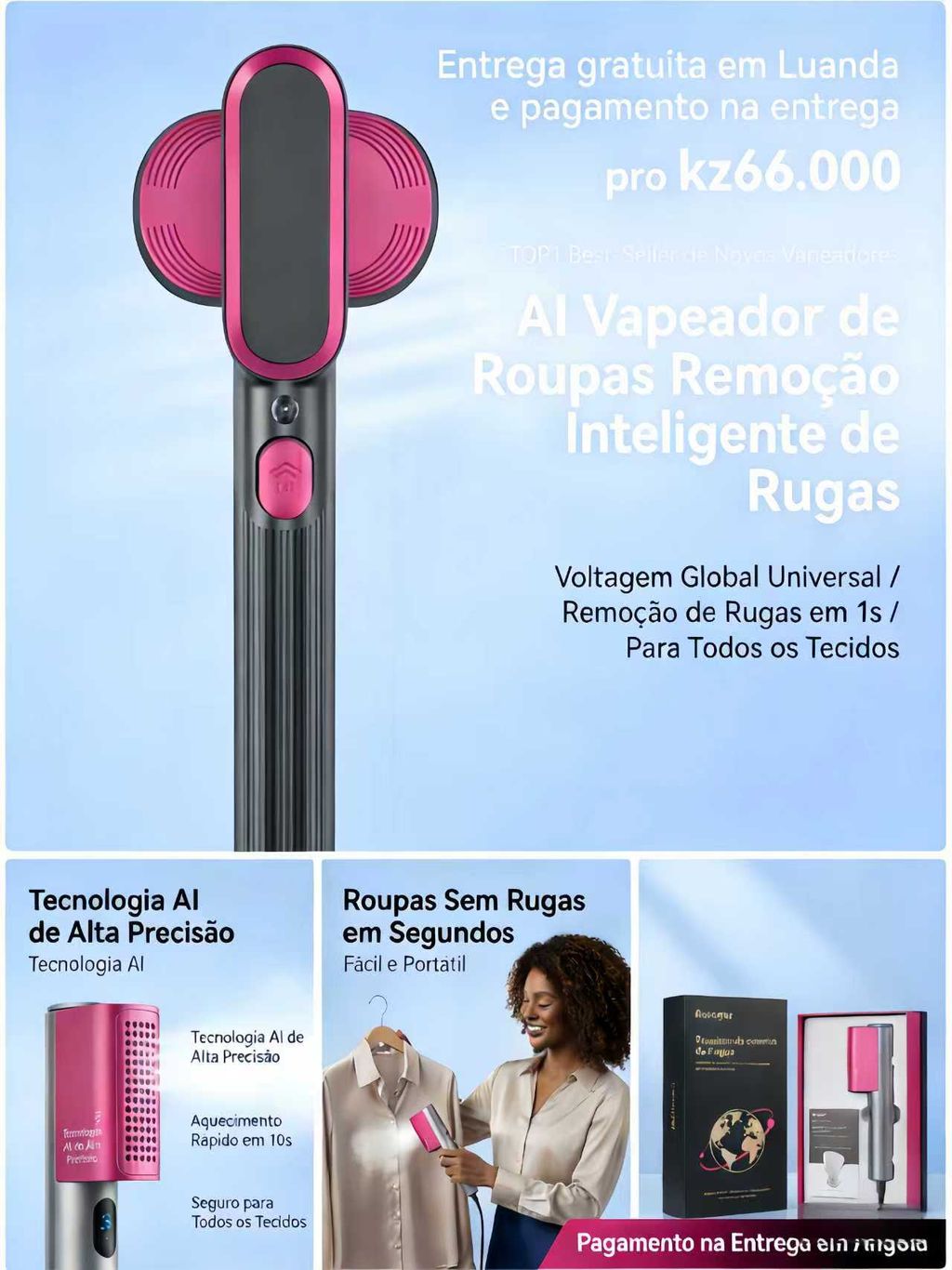 Funciona como um pincel de vapor eficiente, ideal para cuidar de todas as suas roupas de forma simples e rápida, perfeito para o uso doméstico no Angola.