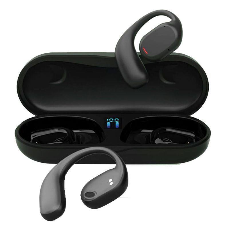 Novo fone de ouvido Bluetooth de dois canais para uso em negócios e esportes, com design para encaixar nas orelhas, longa duração da bateria e modelo exclusivo, compatível com diversos dispositivos.